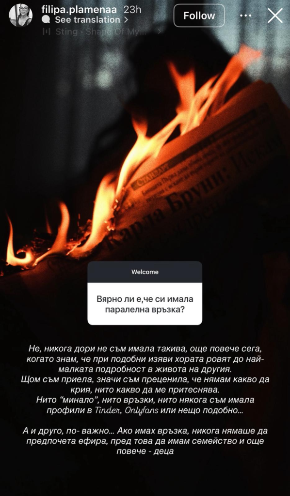 Най-накрая Филипа не се сдържа и го нарече „травмиран, подмолен човек, който проектира своите травми на другите“. Тя е категорична, че не иска да бъде свързвана с него по никакъв начин, както и че той е готов на всичко, за да постига целите си: